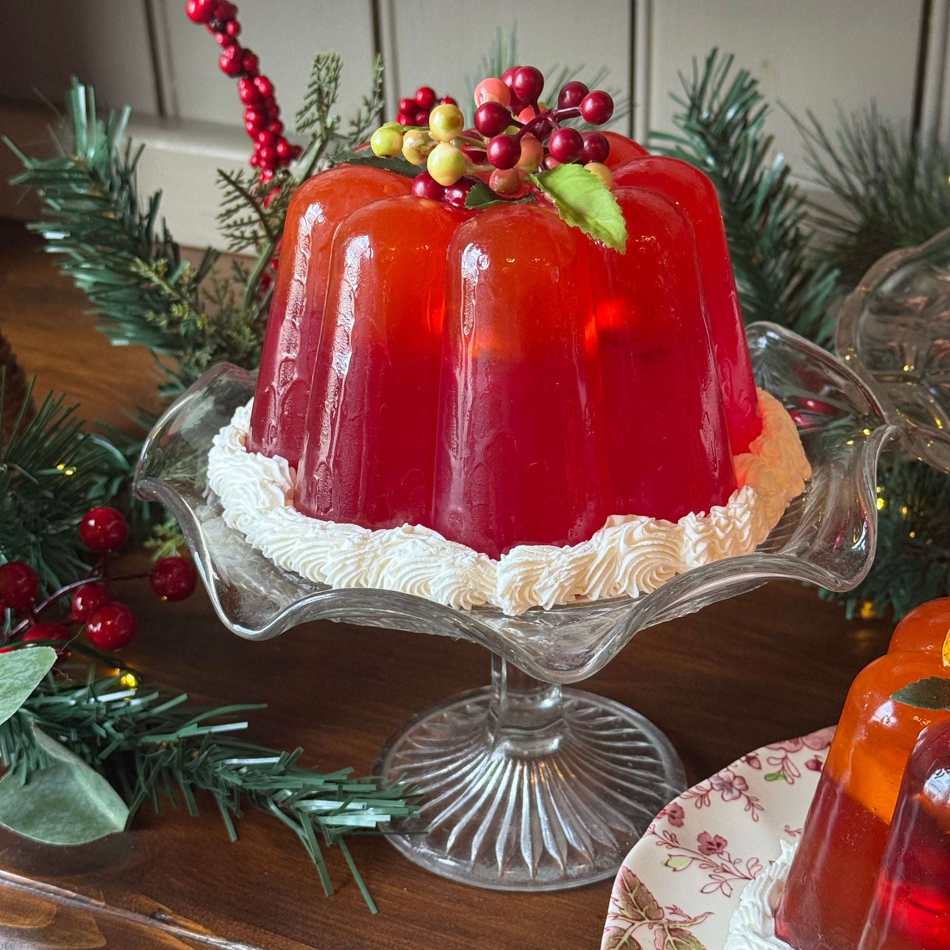 Each jelly is designed as a showpiece for tables, counters, festive scenes and display cabinets, bringing colour and height without the challenges of using real food. These pieces are part of our heritage-inspired collection, drawing on historic dessert moulds and the theatrical presentation of period dining.